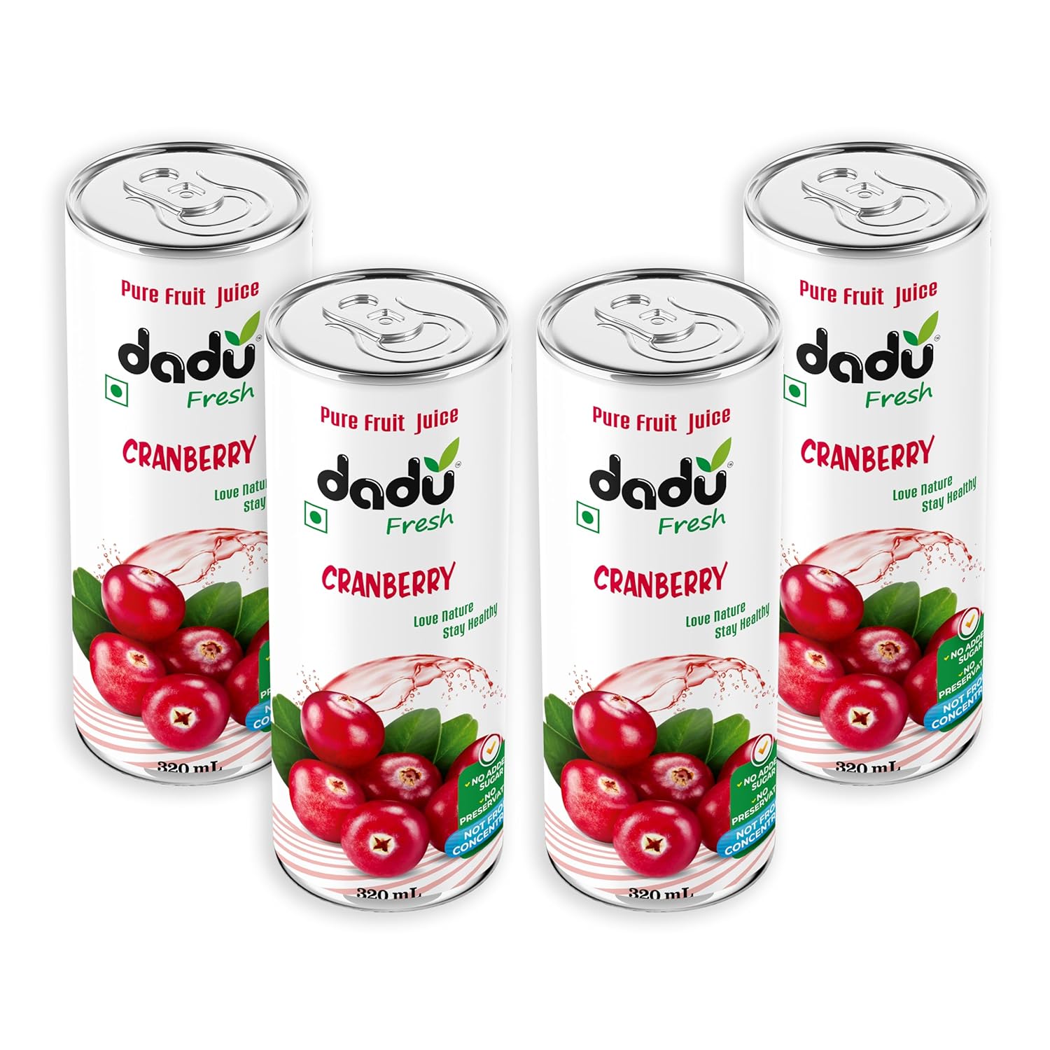 Dadu Fresh Cranberry Juice | Pure Natural Fruit Healthy Beverage | Not from Concentrate, No Added Sugar, No Preservatives or Artificial Flavours | Vitamin Rich & Naturally Refreshing | 4 Cans x 320ml (1280ml)